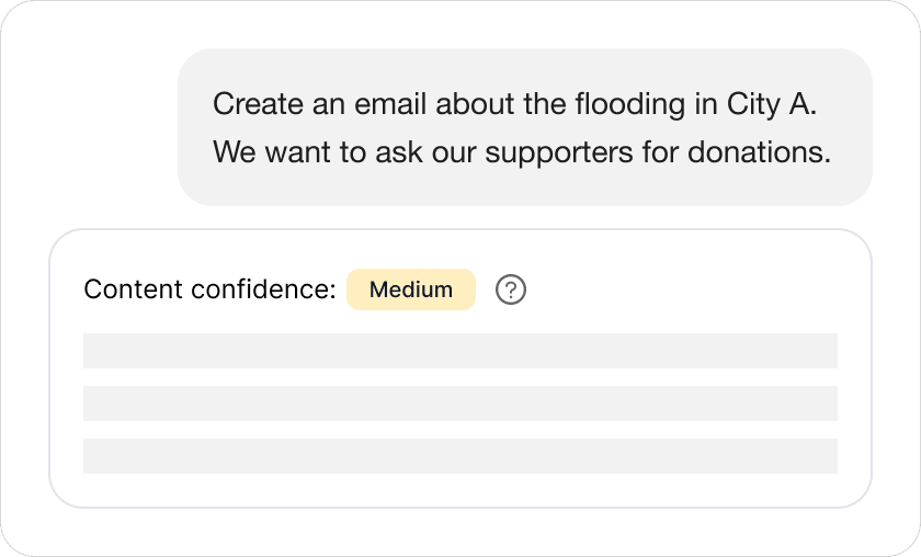When redesigning the AI experience for Quiller.ai (a content creation AI product for mission-driven organizations) we introduced a new pattern: output confidence badges.