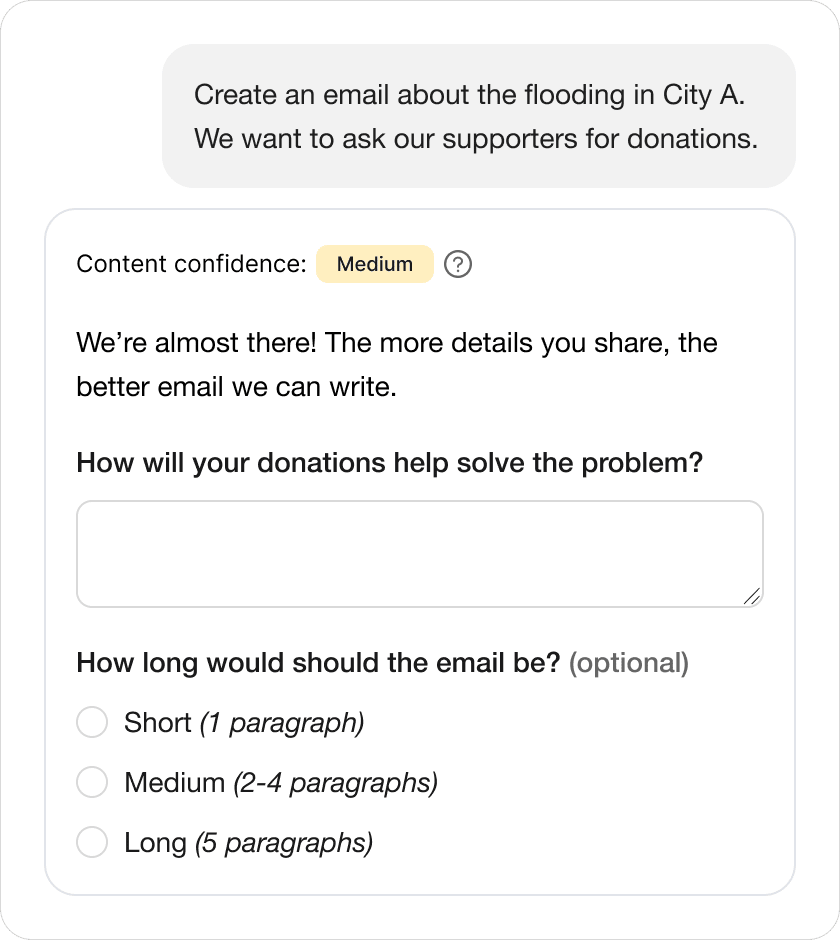 The product shared how confident it felt about the response, so users could quickly judge whether their prompt needed more detail.